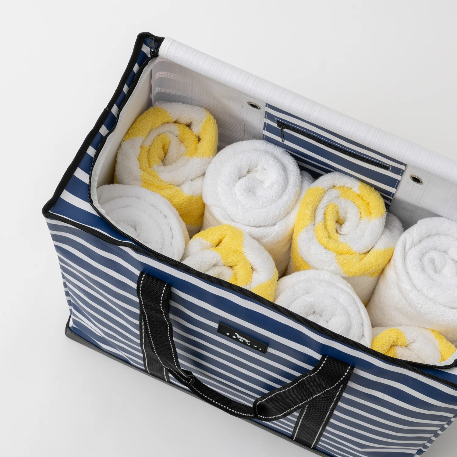 OUR SECOND BIGGEST BAG. Prefer one big bag to three smaller bags? Us too! Ridiculously lightweight and amazingly durable, this extra-large tote lets you fit everything you need in ONE bag. A favorite for beach/pool, travel, seasonal storage (they stack nicely), moving day, and more. For an even larger version (the biggest bag we make), check out the 4 Boys Bag. And because one is never enough, Bundle + Save when you buy multiple storage solutions (mix or match - your choice).